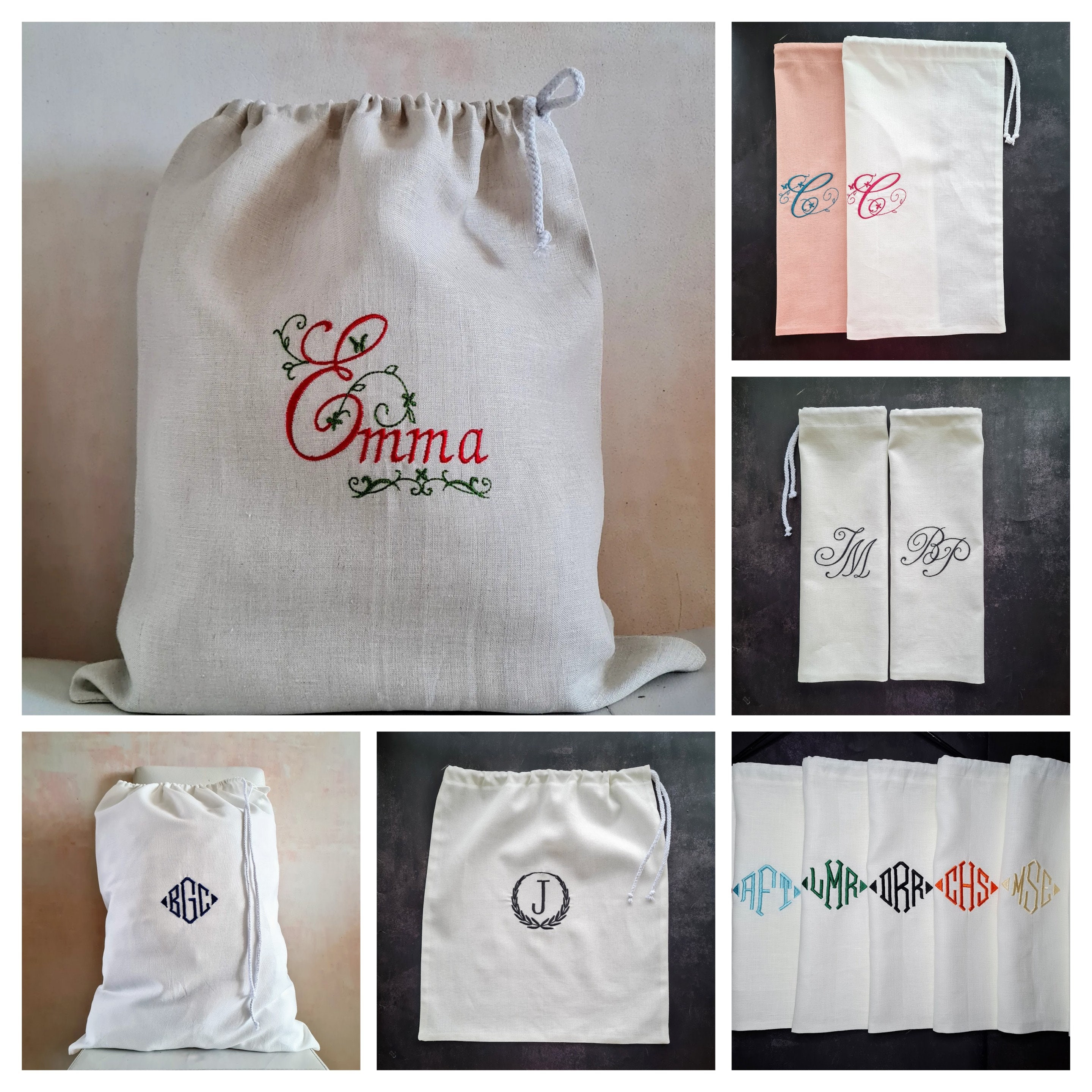 Golf Shoe Bag Linen Embroidered Custom 3 Letter Monogram Etsy